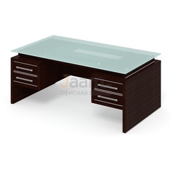 Стол руководителя ПК-ДПК-СТ200Х100СМ/ПТ2 №46021 - столешница: лдсп 38 мм, кромка: пвх 0,45мм, покрытие: ламинат, стекло: матовое.